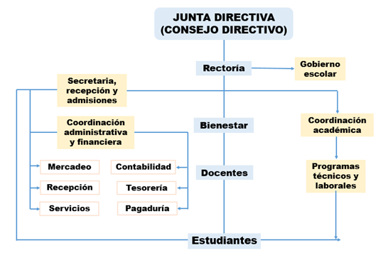 Este núcleo articula los ámbitos de la organización de la institución, partimos de la formulación de los principios que rigen la gestión: el ámbito formativo; el ámbito normativo; el ámbito de la administración y de la gestión, y el ámbito de la interinstitucionalita, el manual de convivencia que cobija todos los estamentos institucionales; manuales de procedimiento, plan operativo y de funcionalidad institucional, el capítulo cierra con el esbozo del sistema de evaluación de la gestión.